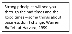To be great, you have to invest in assets when no one wants them, invest in a big way, and hold on to the investment until everyone wants them. Then you can sell. Do you think the act of holding on to things no one wants is easy? How can it be? It can only be done with tremendous Faith. Ask the greatest investors. Read their work. Strong principles will see you through the bad times and the good times – some things about business don’t change.