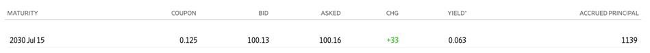 The TIPS Bond is priced at $100.13, about $11 lower, than the Issue price.