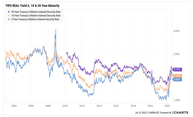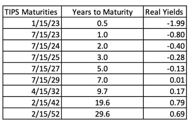 TIPS Real Yields as of 7.31.2022: From the WSJ, I have created a table of TIPS maturities from 6 months to 30 years and the corresponding real yields.