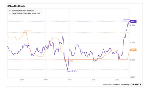 The steady inflation rate of around 2% for the last 10-20 years has shot up to 7.04% in 2021 and is expected to end in 2022 at around 8-9%. We can say that in 2 years, the value of a dollar would be 15% lower when compared to a basket of goods and services defined by the CPI above. Inflation is no joke. We all feel it. The Federal Reserve is committed to bringing inflation down to 2%.