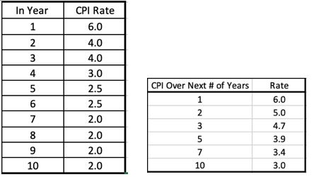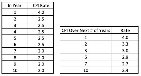 Let’s create a hypothetical path for CPI where inflation stays sticky for a few years: