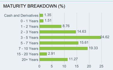 We can use the Effective Duration of the Bond Portfolios for the three time-bucketed categories.
