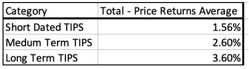So far, we have understood how TIPS track CPI, and what happened to a 10-year TIPS bond over the last two years since issuance. At least, we understand WHY TIPS have tracked CPI but not generated total returns in line with CPI.