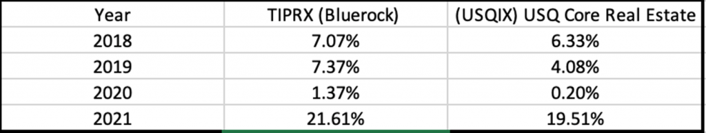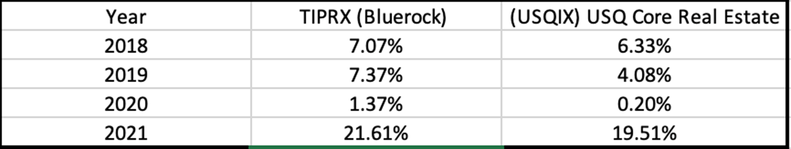 Contrary to the massive volatility seen in publicly marketable securities, these closed-end interval private real estate funds have performed beautifully over the past few years. Here are the numbers for two of the funds: