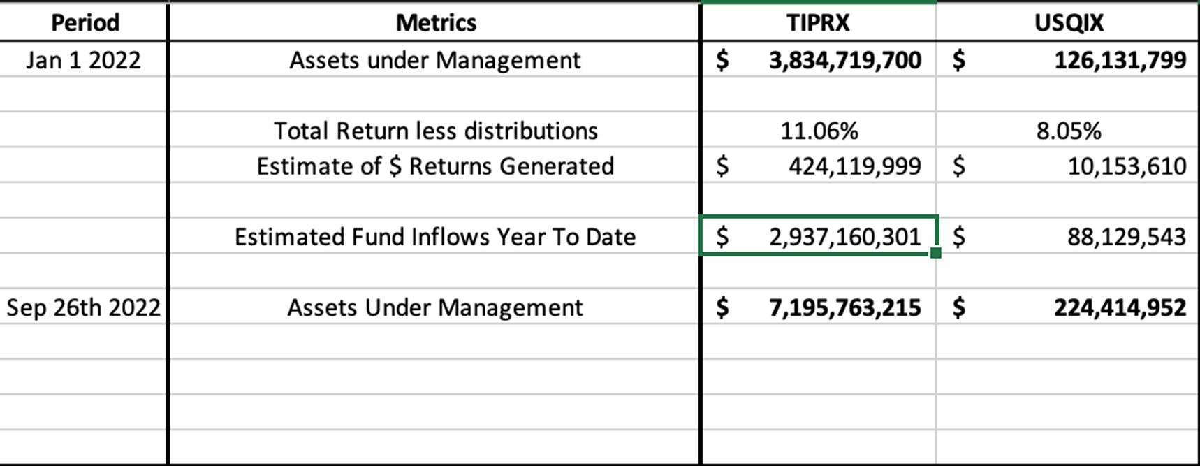 It thus appears that investors have tried to seek protection from rising interest rates, falling equities, rising real yields, and rising risk premiums by hiding in these funds standing tall.