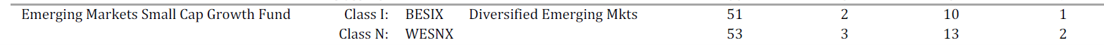 William Blair Emerging Markets Small Cap Growth (WESNX) is a purely outstanding offering. You might or might not be able to buy it.