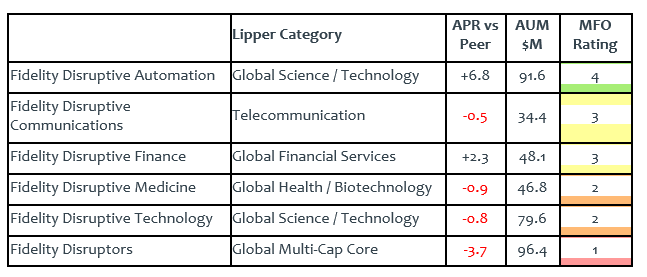 Fidelity, likewise, is moving more funds into an ETF wrapper. Two and a half years ago, Fido launched a series of trendy funds which promises to find the disruptors, not just the innovators, and profit from them.