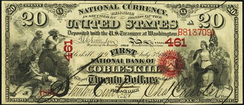 The two problems with private currency are strikingly modern: (1) people didn’t trust it, and (2) people were right not to trust it. A merchant in Cleveland might value a Cobleskill dollar at $.80 even if they didn’t doubt the First National Bank of Cobleskill, while a more skeptical soul in Baltimore might offer just $.60 for it. Since banks were neither insured nor regulated, they failed with some regularity, and their failures often created a contagion across the sector. When a bank failed, all of its currency became worthless, and all of its depositors’ accounts went to zero.