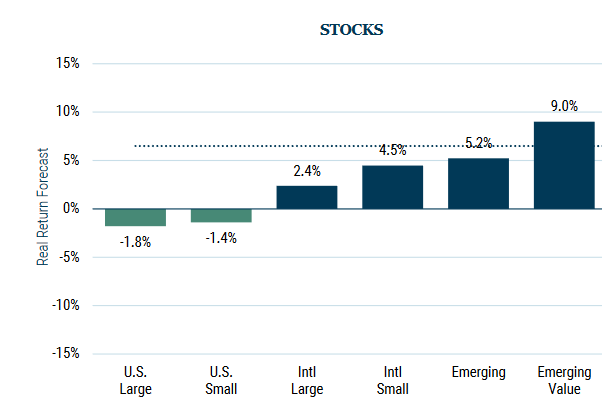 As an overview, here are the capital market assumptions used by large US investment firms for the period through 2033.
