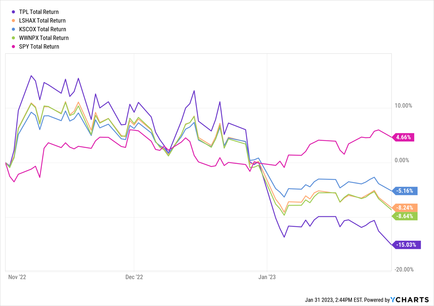 When I wrote in November about Texas Pacific Land being an unusually large weight in Kinetics mutual funds and the associated risk, I did not know that we would go on to see Texas Pacific down 15%, Kinetics Funds down between 5 and 8%, while the S&P 500 was up 5% in the three-month period starting Nov 1, 2022.
