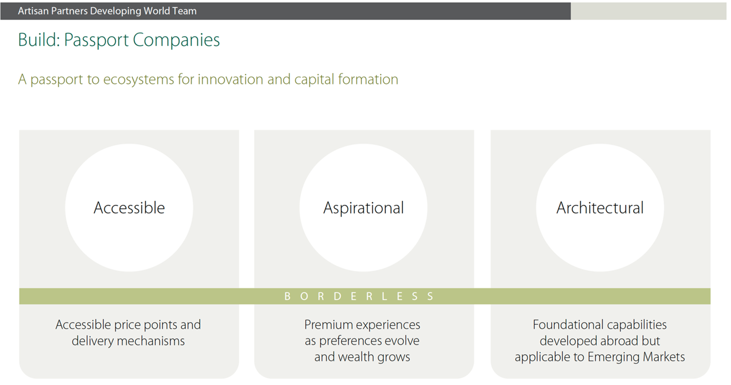 Kaufman does not see himself as a cheerleader for the emerging market asset class. Instead, he now sees Emerging Markets as large latent pools of domestic demand. He believes different tools are needed to invest in this EM world, and for him, those tools are to find Scalable Companies and Passport Companies. These companies have the “potential for disproportionate equity outcomes,” a phrase he keeps revisiting many times. Scalable companies are able to transcend the constraints, and Passport companies are able to cross borders easily to meet customer demand.