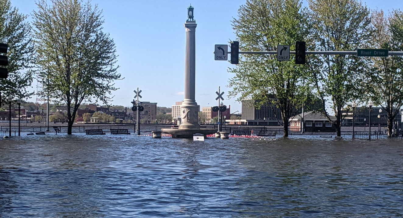 The Mississippi River actually flows from east to west here. Recently, though, it has been flowing east, west, north, south, and, more than occasionally, up. As I write, the Mississippi is cresting at 22′, about five feet above the level at which we declare a major flood. People in Davenport take notice. That’s one city.