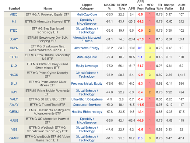 Amplify ETFs is acquiring the assets from ETF Managers Group, a thematic boutique of … idiosyncratic offerings. Here’s the performance of the funds since inception.