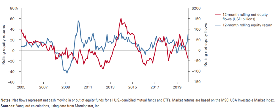 It appears that a fund’s relative size over a long-term period often reflects its performance. Vanguard illustrates how mutual fund cash flows follow performance in Figure #3.