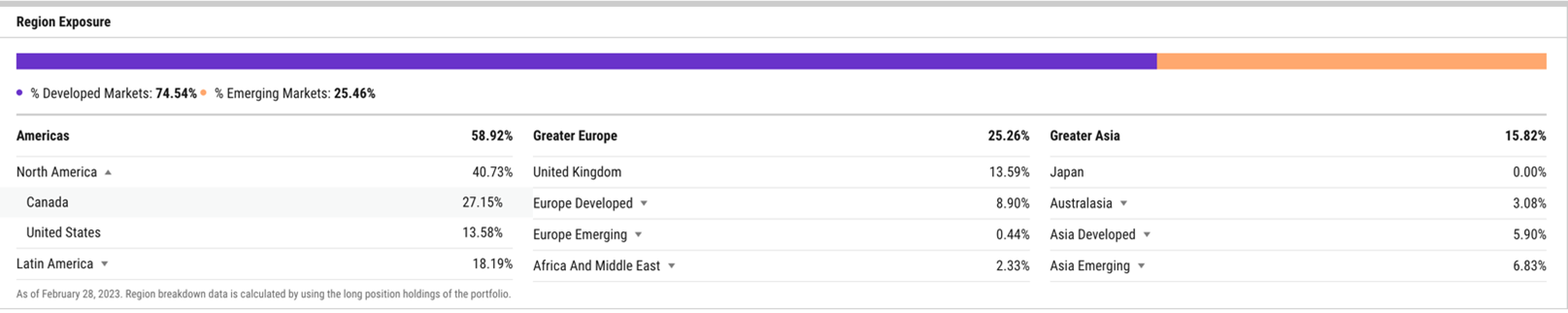 Now, let’s look at Moerus’ geographical allocation: 87% of the portfolio is outside the US.
