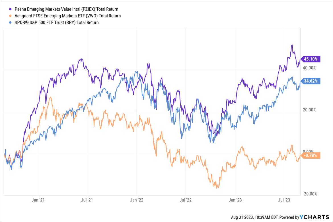 Pzena EM Value Fund has earned just north of 4% a year since its inception. The interesting part of capitalism is that there is always something going on. Since the pandemic lows, this fund has earned 23% annualized, almost double the VWO.