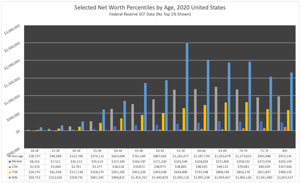 Figure #1: Net Worth Percentiles by Age in the United States (2020)