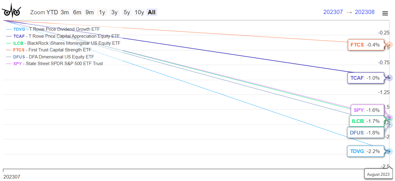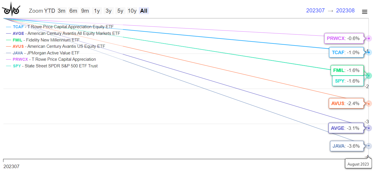 Figure #2: Comparison Selected Actively Managed Large Cap Core ETFs – Two Months