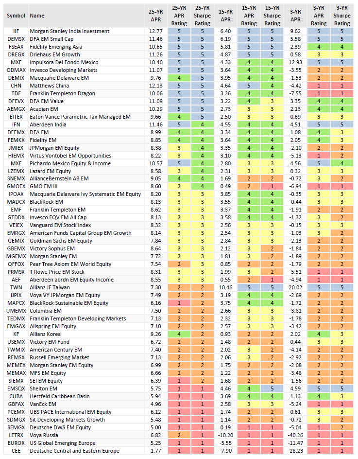 We will share a quick recap of the Three Great Storms, then highlight the fate of the EM funds that survived all three. There’s actually some good news about picking a fund that might survive the storms ahead.