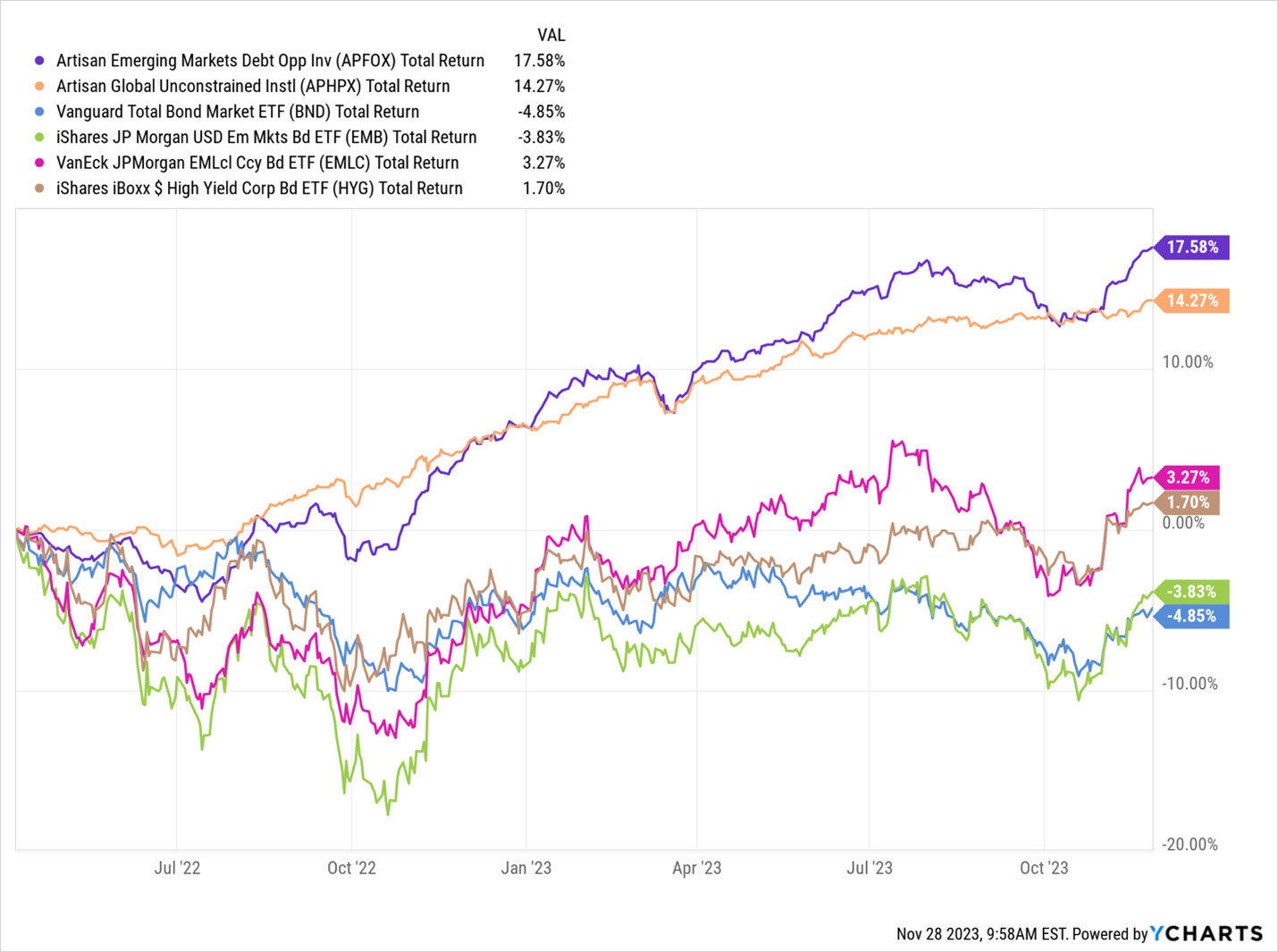 The EMDO and Global Unconstrained have fared substantially better in a hostile broader environment for bonds. Tell us something we should learn from this observation.