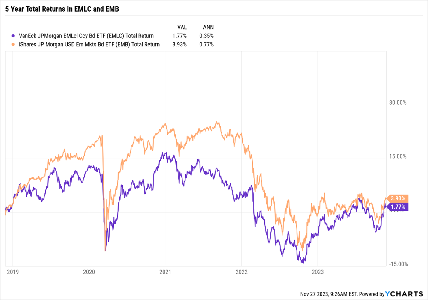 For local currency investments, the Van Eck JP Morgan EM Local Currency Bond ETF (EMLC) has almost $3 Billion in AUM. For hard currency investments, The iShares JP Morgan USD EM Bond ETF (EMB) is the go-to vehicle with almost $14 Billion in Assets. Unfortunately, neither of them inspires despite the billions invested in them. The 5-year Total Return for both are in the low single digits. There are many reasons for the poor record, but I am not looking for losers to turn around. I want to talk to winners who know how to make money.
