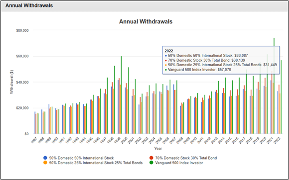Figure #2: Nominal Annual Withdrawal for Past 37 Years Using Portfolio Visualizer