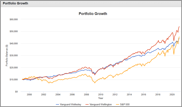 Figure #4: Example 1998 – 2022 Vanguard Wellesley, Wellington, S&P 500