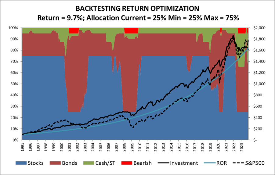 Figure #7: Author’s Investment Model, Stock Allocation >= 25% <=75%