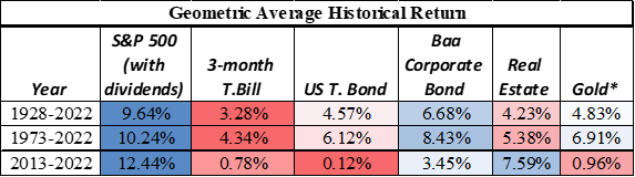 Table #2: Historical Returns Source: Aswath Damodaran at the Stern School of Business at New York University