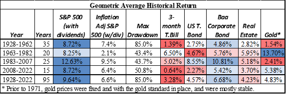 Table #3: Historical Returns by Secular Markets