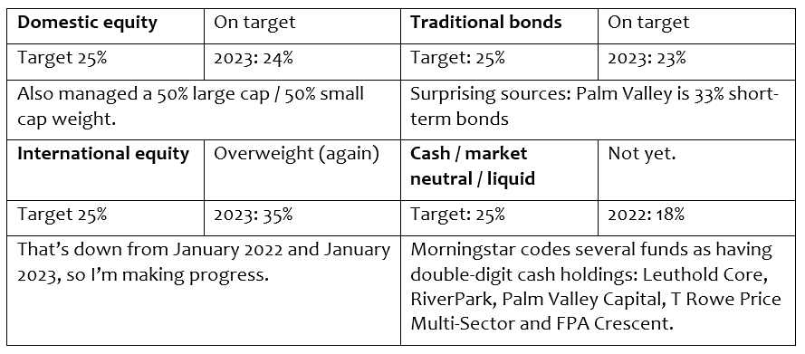 As it turns out, I inadvertently recreated the famous Vanguard Wellington balanced fund, as least for 2023: