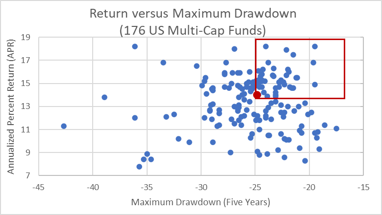 Figure #2: Multi-Cap Core Funds APR Versus Maximum Drawdown (Five Years)
