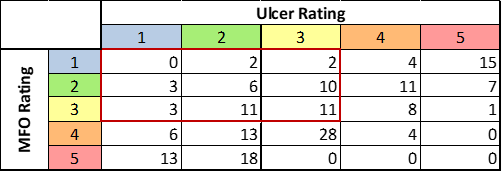 Table #3: Multi-Cap Core Funds MFO Rating versus Ulcer Rating (Five Years)