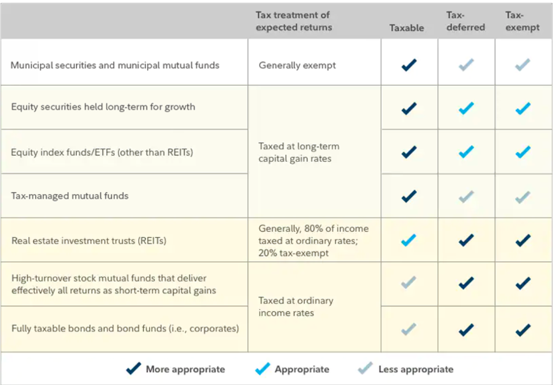 Table #7: Fidelity Asset Location and Tax Characteristics
