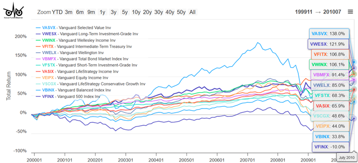 Figure #6: Selected Vanguard Fund Performance (2000 – 2010)