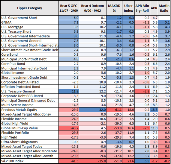Table #2 shows the performance of Lipper Categories during the 2000s decade. Fixed income performed well. Precious Metals Equity again performed well but with high downside risk.