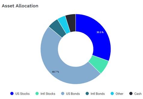 I used Portfolio Visualizer to see the current asset allocation of the portfolio which is about 37% stocks with seven percent allocated to international stocks.