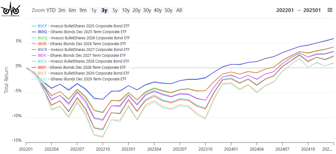 Figure #4: Corporate Debt BBB-Rated Bond Ladder ETFs (3 Years)