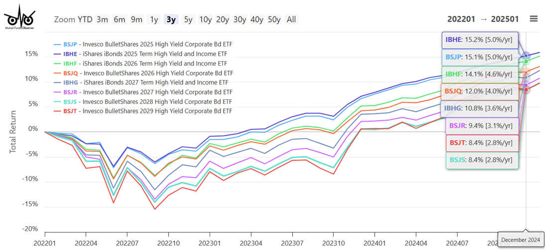 Figure #5: High Yield Debt Bond Ladder ETFs (3 Years)