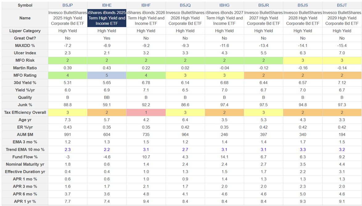 Table #3: High Yield Bond Ladder ETFs – (3-Year Metrics)