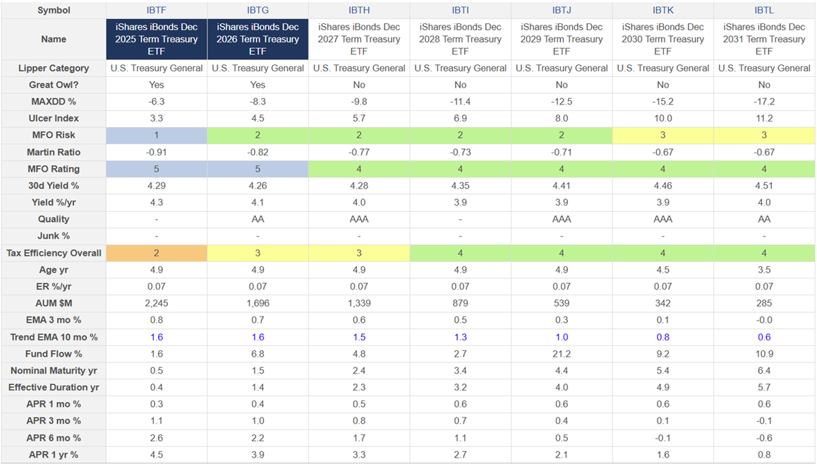 Table #4: Treasury Bond Ladder ETFs – (3-Year Metrics)