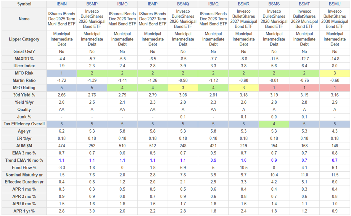 Table #5: Municipal Bond Ladder ETFs – (3 Year Metrics)