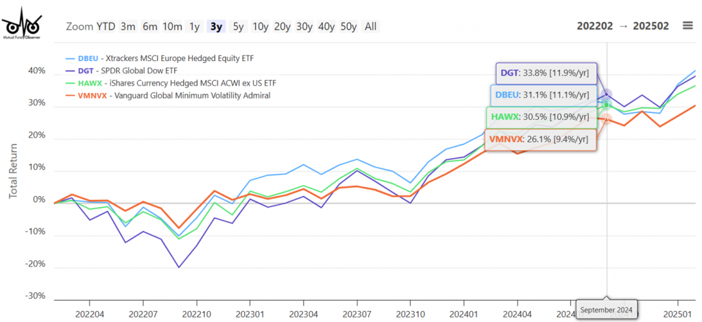 Source: Author Using MFO Premium fund screener and Lipper global dataset; Morningstar for three-month return as of March 21st.