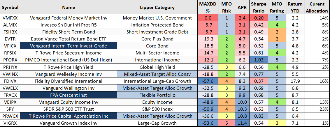 Table #2: MFO Risk and Performance Rating of Author’s Portfolio
